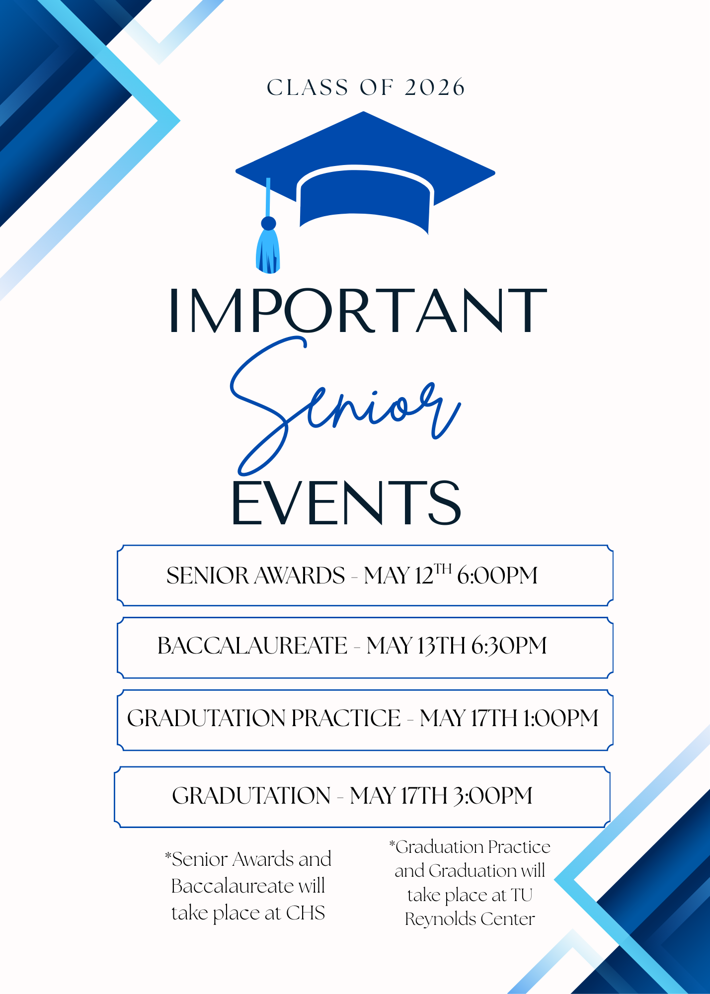 May 17th - Graduation @ 3:00 PM, TU Reynolds Center