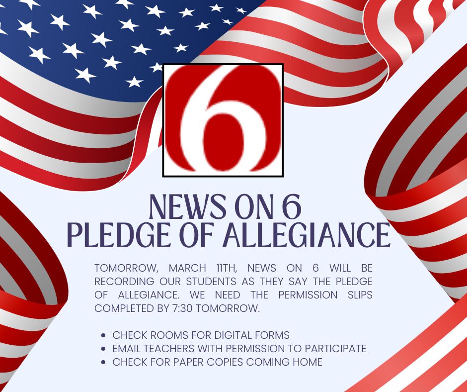 Please ensure you have given permission for your child to record the Pledge of Allegiance for Channel 6 news. There are three ways to grant permission: